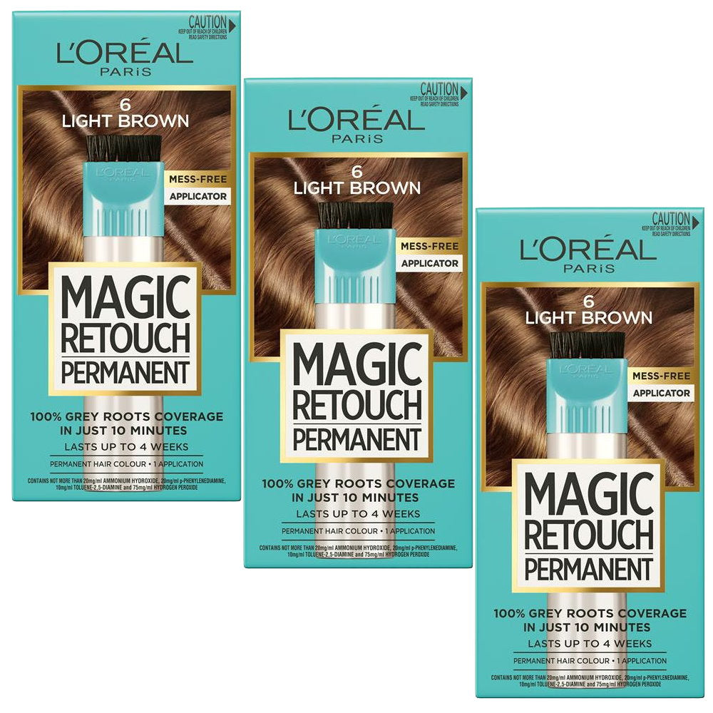3x L'Oreal Paris Magic Retouch Permanent Hair Colour 6 Light Brown