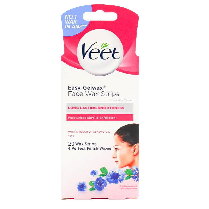 Veet Easy-Gelwax Stirps Face Precision is specially designed for sensitive skin. Infused with almond oil and vitamin E, it provides a gentle and effective hair removal experience. Each pack contains 20 strips and 4 Perfect Finish Wipes for a smooth finish.