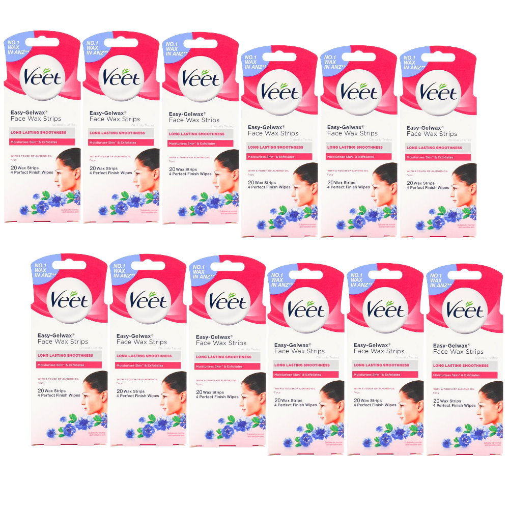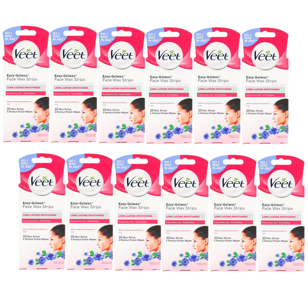 12x Veet Easy Gelwax Face Wax Strips Precision 20 pack