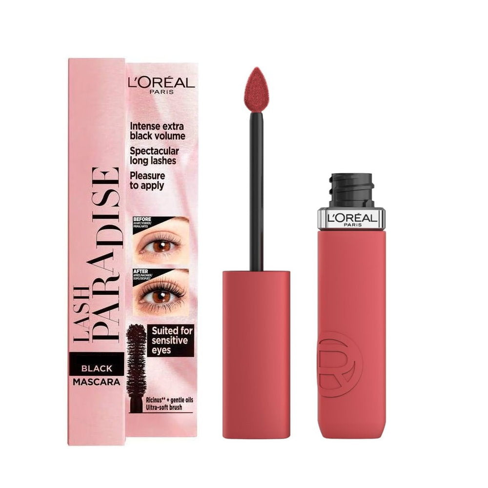 2pk SET L'Oreal Paris Lash Paradise Mascara Black and Matte Liquid Lipstick