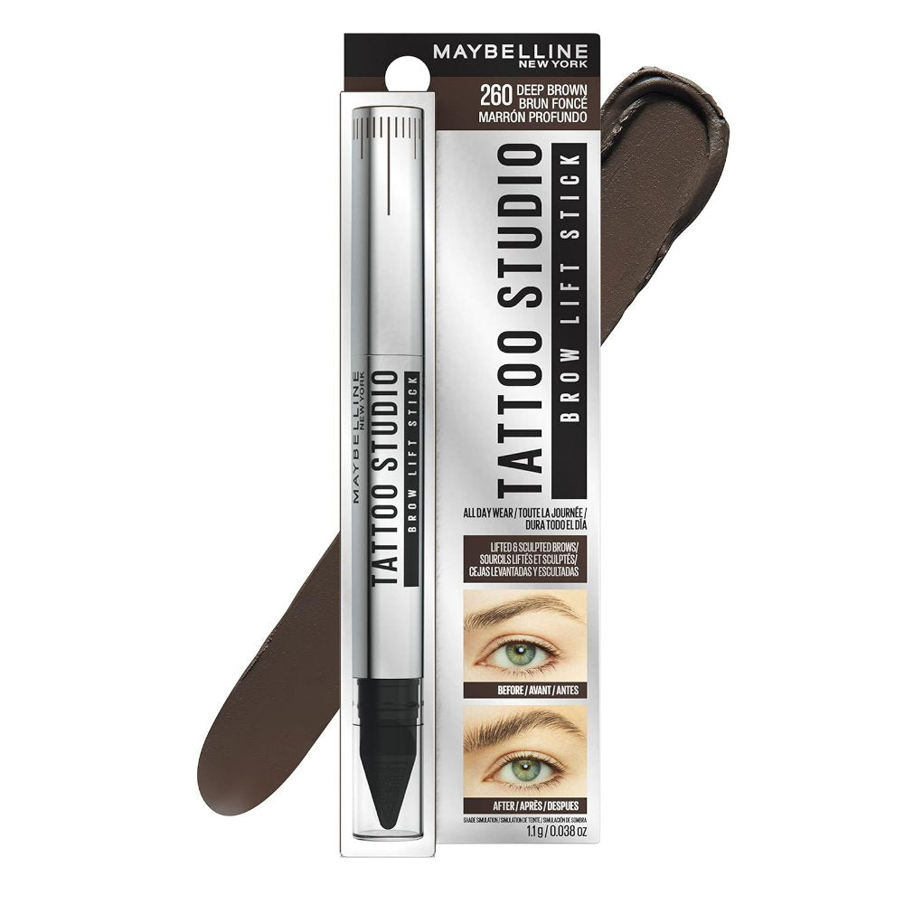 Meet Tattoo Studio Brow Lift Stick-lift your brow look, skip the salon hassle. Now just swipe on and brush up to get lifted and sculpted brows. This easy eyebrow shaper delivers a lifted, sculpted brow look from a stick. Its tinted wax conditioning complex formula smoothes and lifts brow hairs into place. Delivers all-day wear. Also, its Lifter Brush shapes brows with ease. Fade-resistant and smudge-resistant.