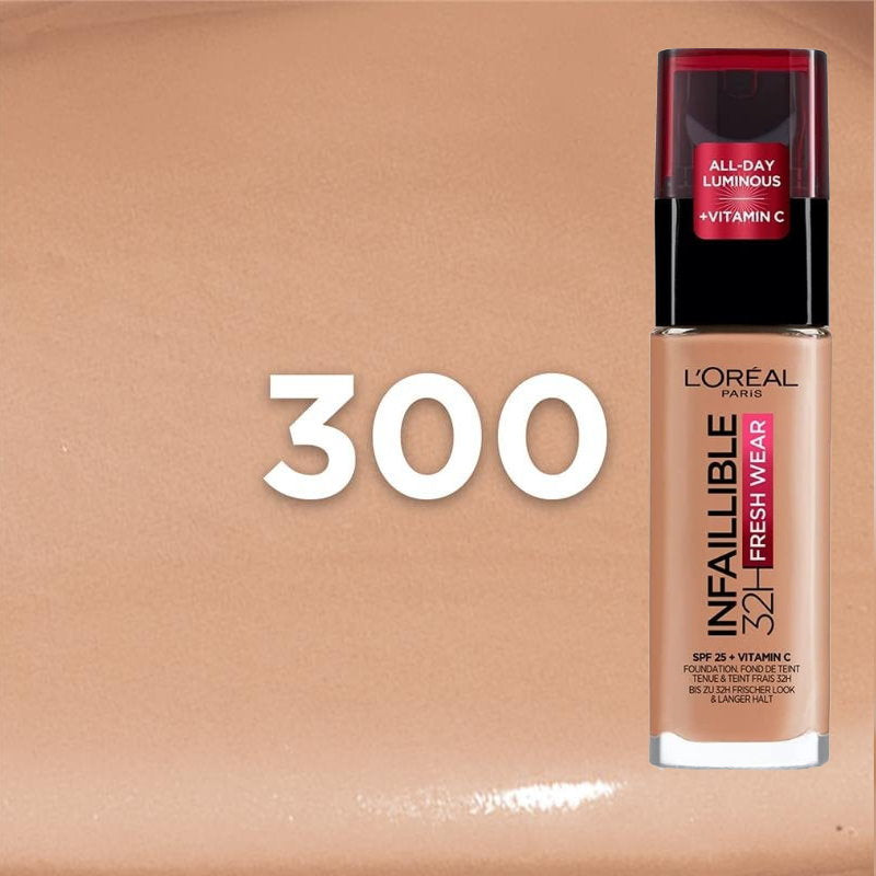 3x LOreal Paris Infaillible 32H Fresh Wear Foundation SPF 25 30ml 300 Amber