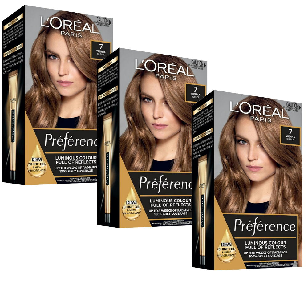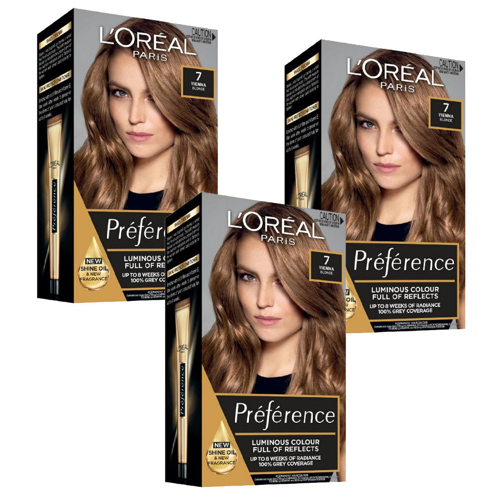 3x L'Oreal Paris Preference Permanent Hair Colour 7 Vienna Blonde