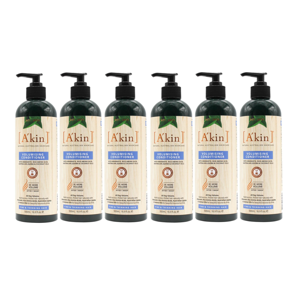 6x Akin Volumising Conditioner Amaranth, Rice Amino Acid, Australian Jojoba and Coconut Oils 500ml
