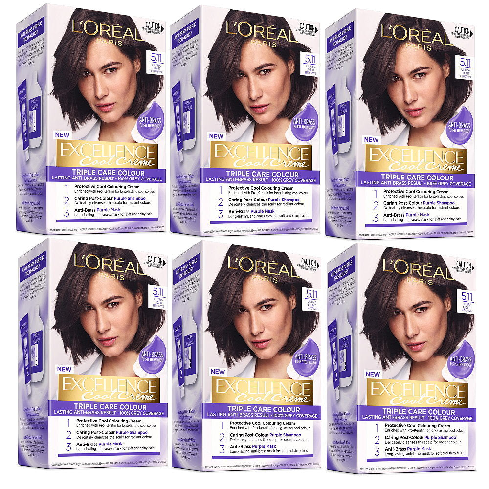 6x L'Oreal Paris Excellence Cool Creme Permanent Hair Colour 5.11 Ultra Light Brown