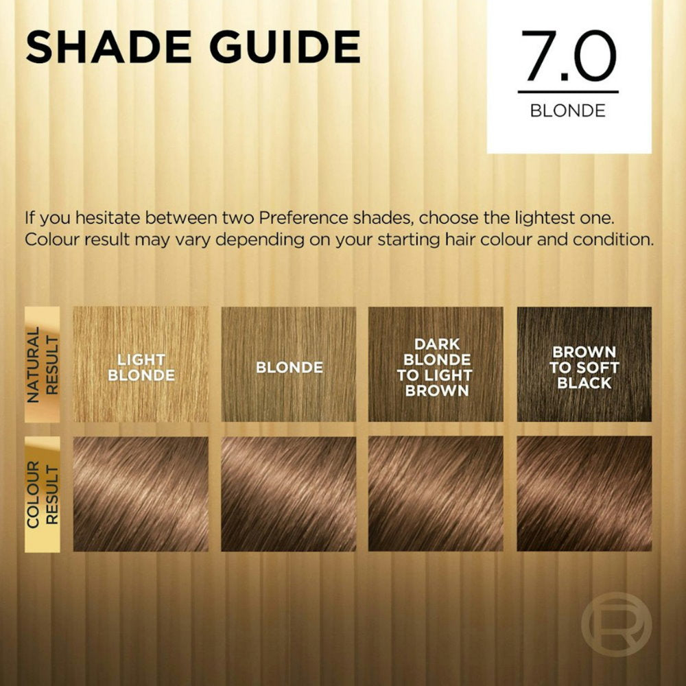 A soft, medium and natural blonde. Préférence is the expert in long-lasting luminous colour that offers the latest on-trend fashion shades direct from the salon. With vibrant shades, to light and dark hues and salon effects like Ombre and Highlights. Enhanced with a hi-shine elixir and unique colour extending conditioner, your hair is guaranteed to remain luminous for up to 8 weeks.