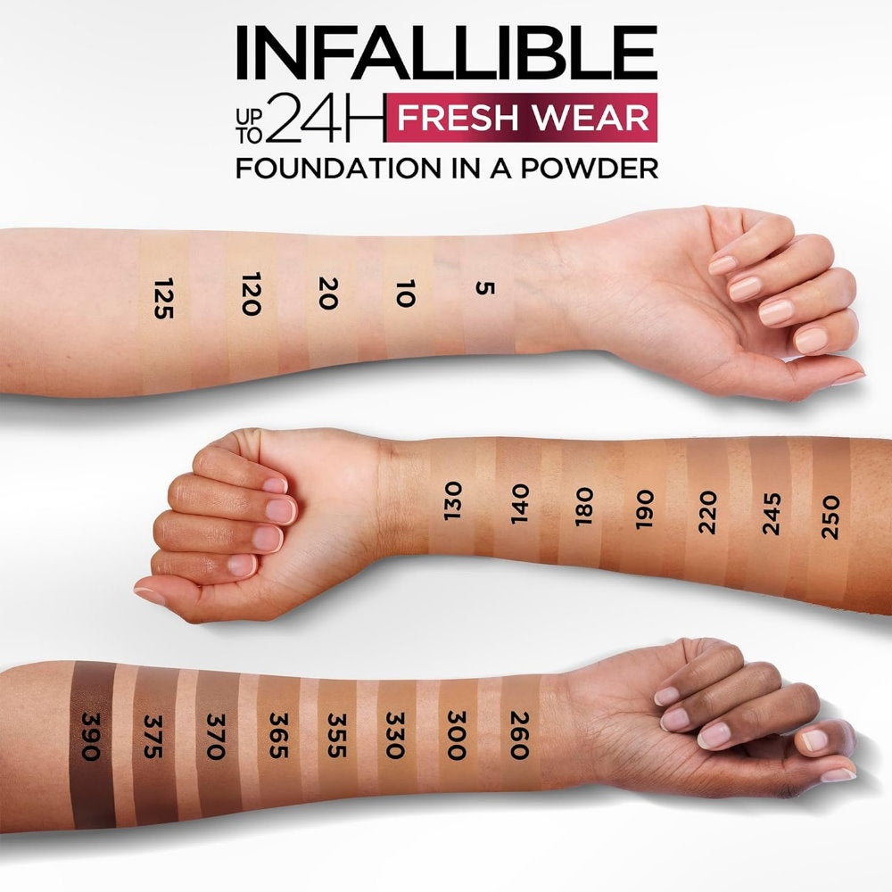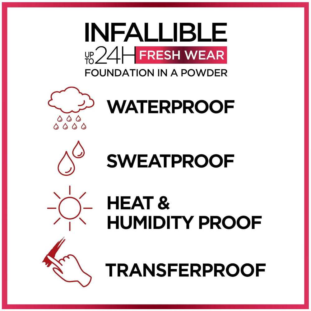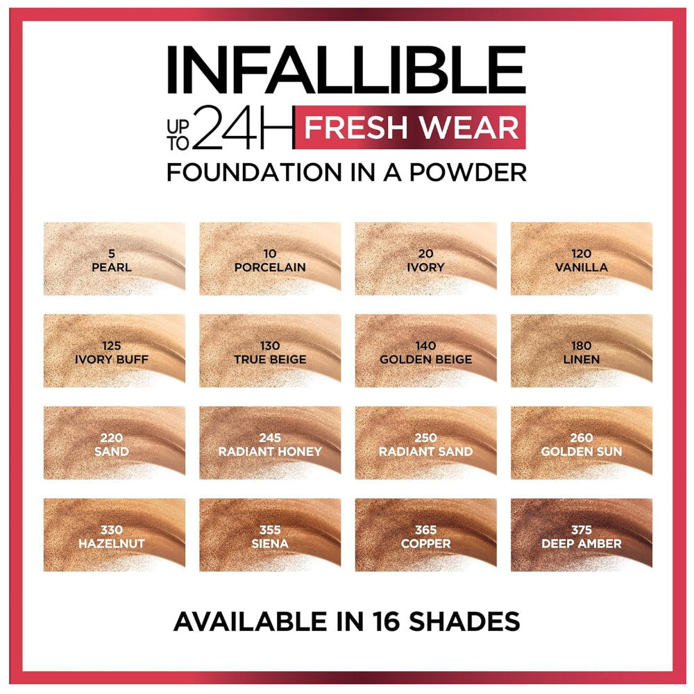 Discover the NEW Infallible 24hr Fresh Wear Foundation in a Powder by L'Oréal Paris which covers and lasts like a fluid, while mattifying with no cakeyness.