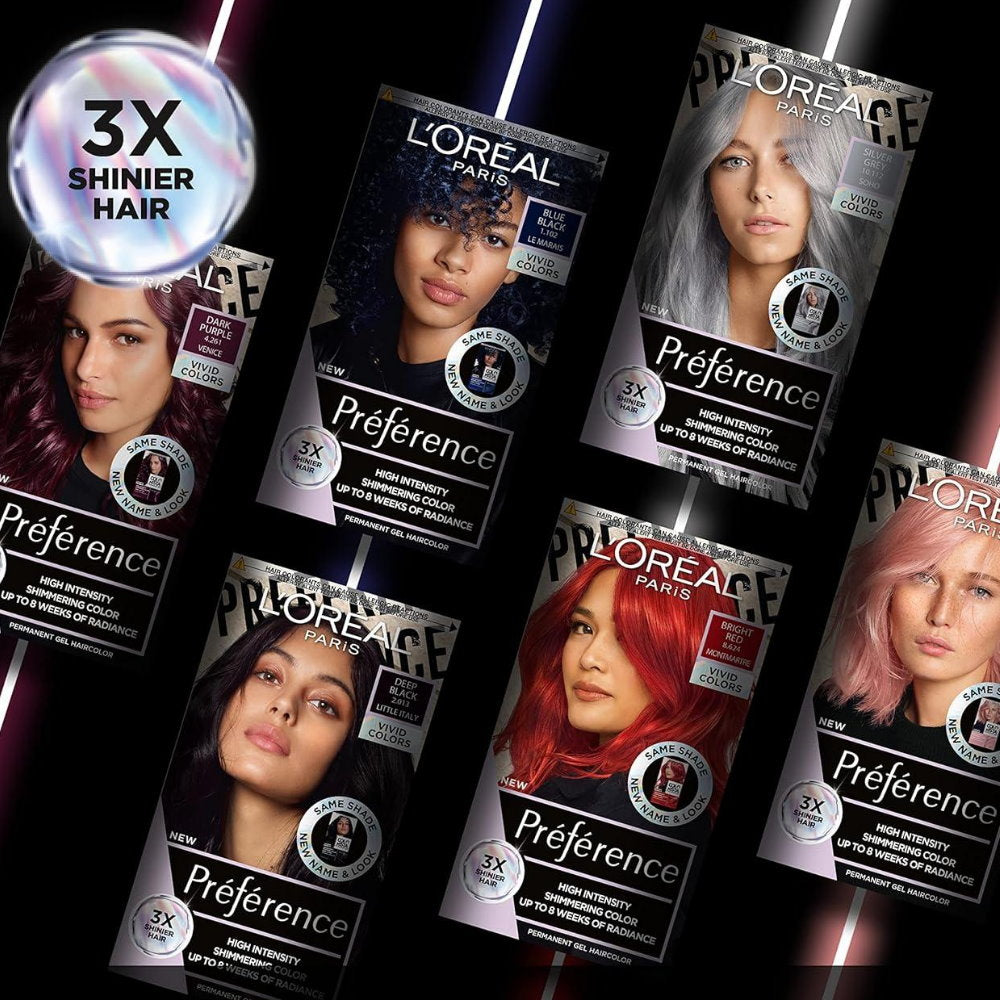 Our NEW Préférence Vivids range provides bold, luminous colour full of reflects, that lasts up to 8 weeks *Instrumental test.