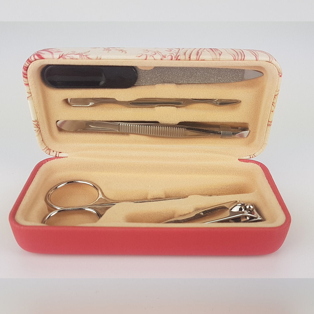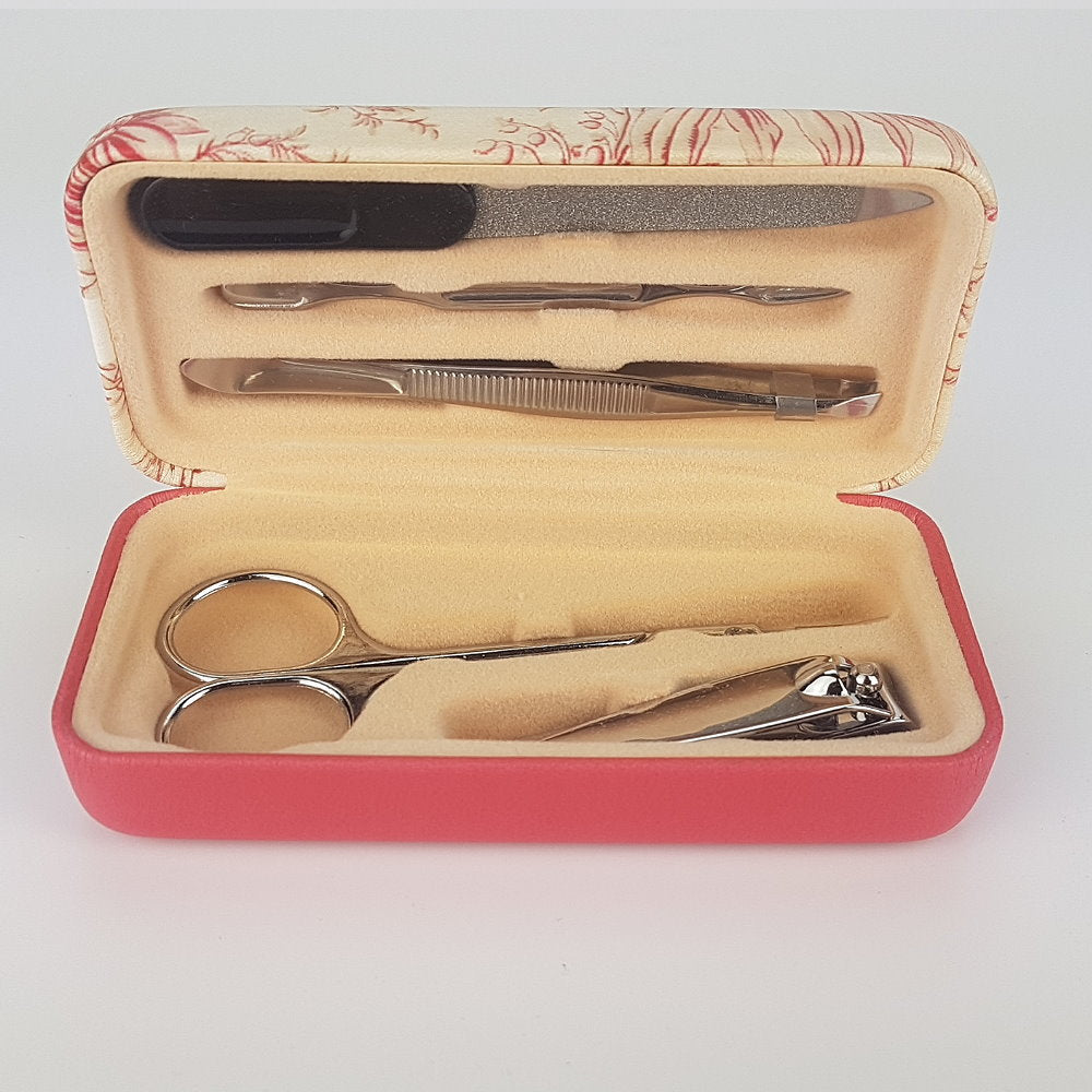 Expertly groom your nails with the Manicare SIR Nail Grooming Kit in Pink. This kit includes all the essential tools for keeping your nails neat and tidy. The high-quality stainless steel tools are durable and precise, ensuring a professional result every time. Perfect for at-home nail maintenance or on-the-go touch-ups.