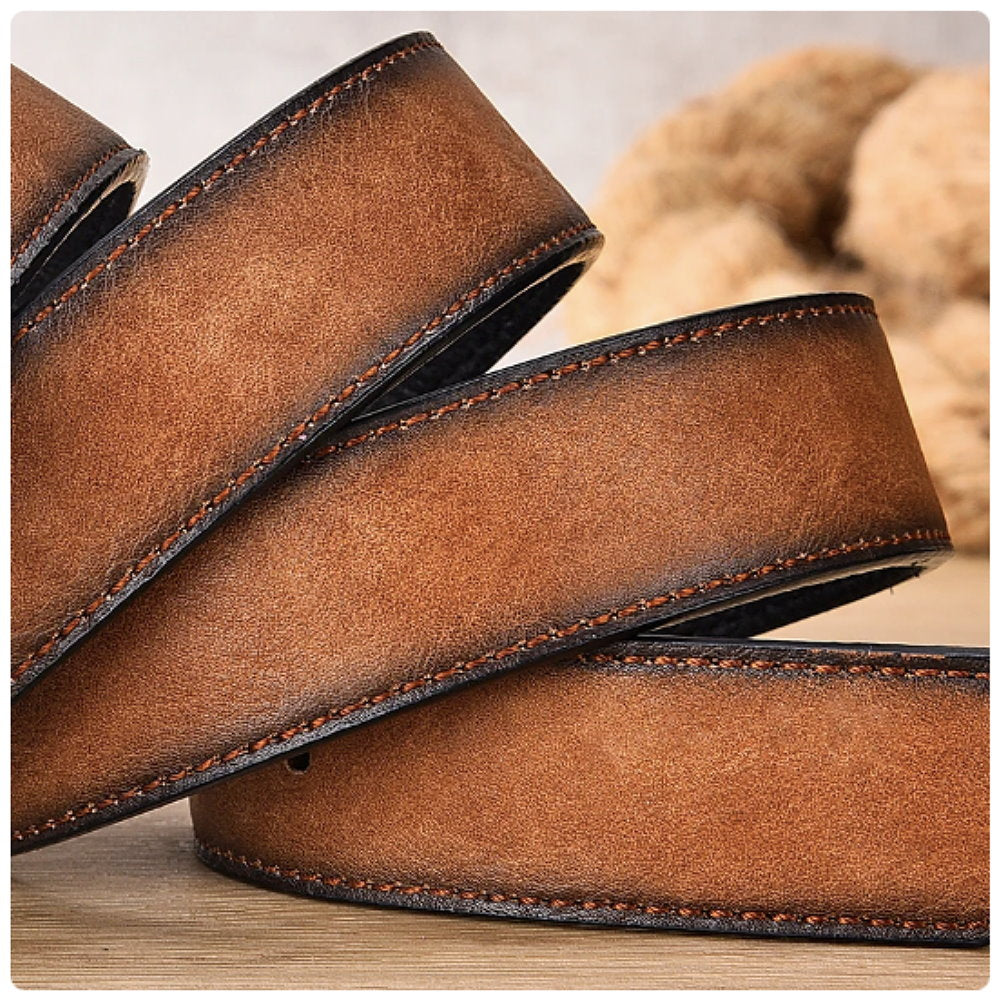OSKA Men’s Pu Leather Belt Male Retro Cowboy - Tan Brown
