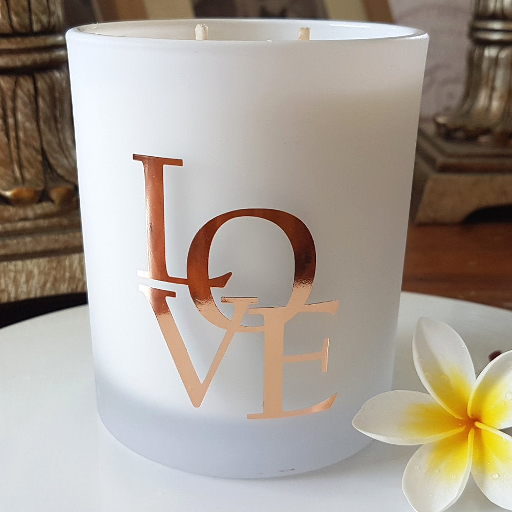 Rosy Gold Double Scented Candles Large Frosted Satin LOVE - Lychee & Peony