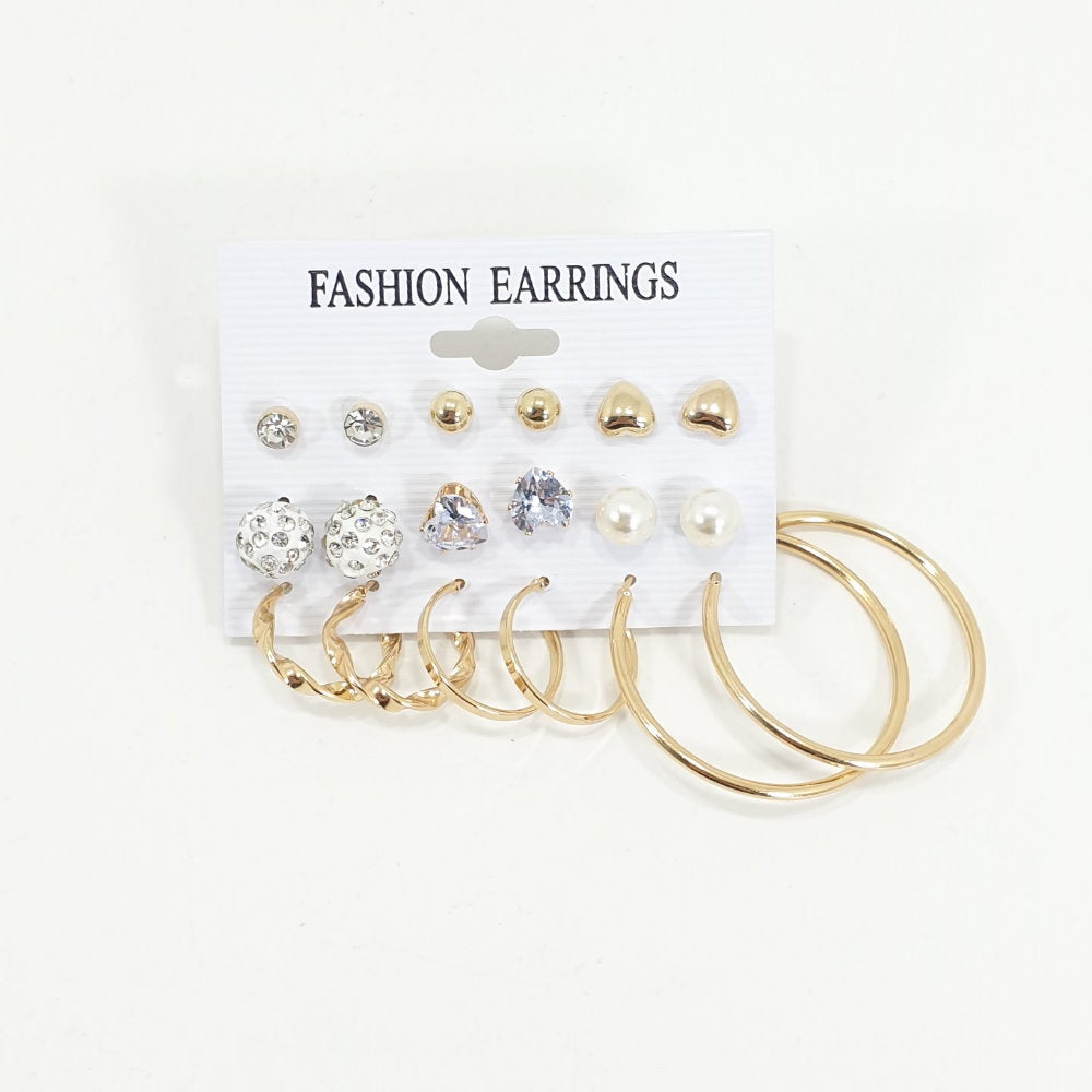 Rosy Lane 9 Pairs Assorted Stud and Hoop Earrings - Gold