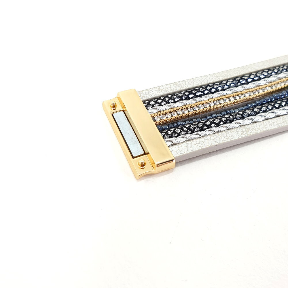 The Rosy Lane Blue Stone Charm Bracelet offers a stylish combination of sparkle, snakeskin pattern, and a secure magnetic clip closure.