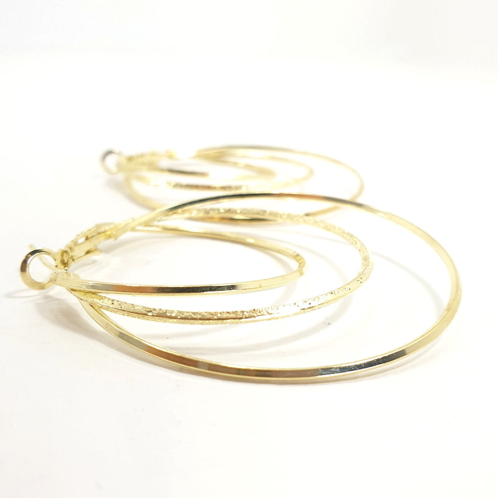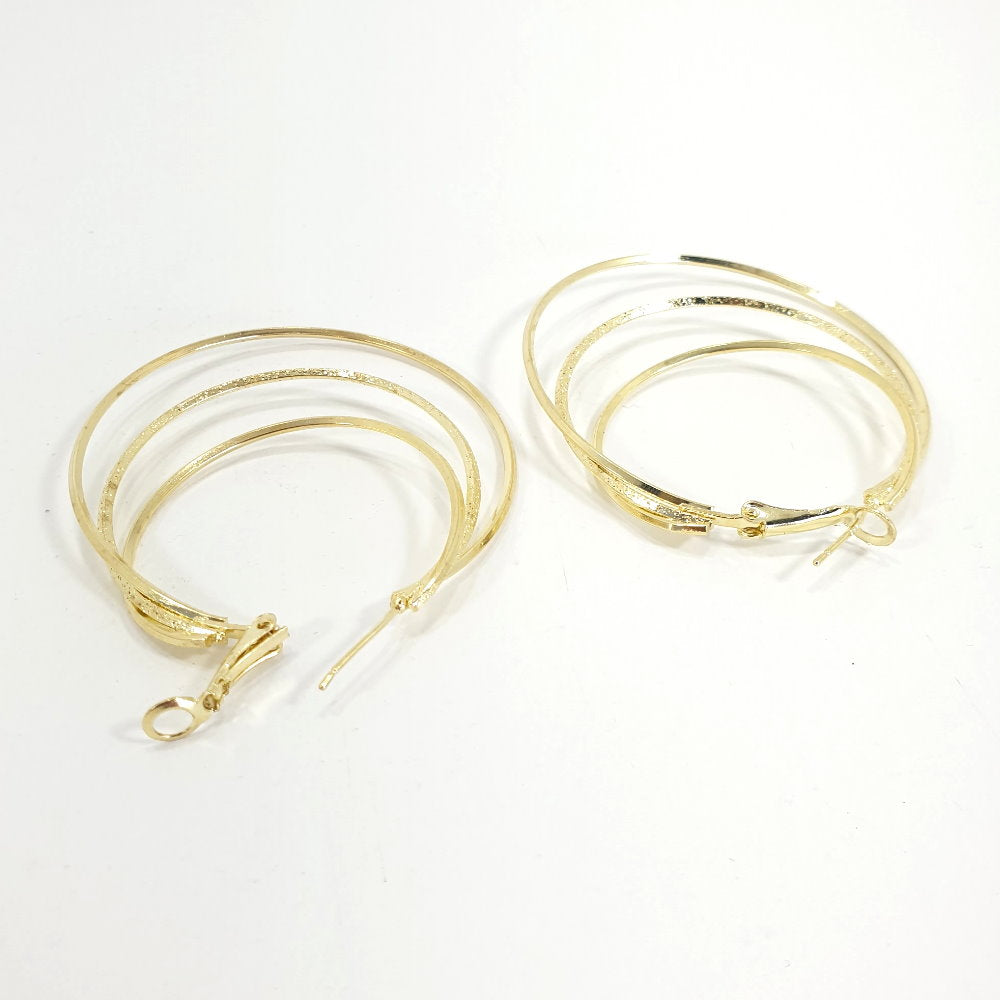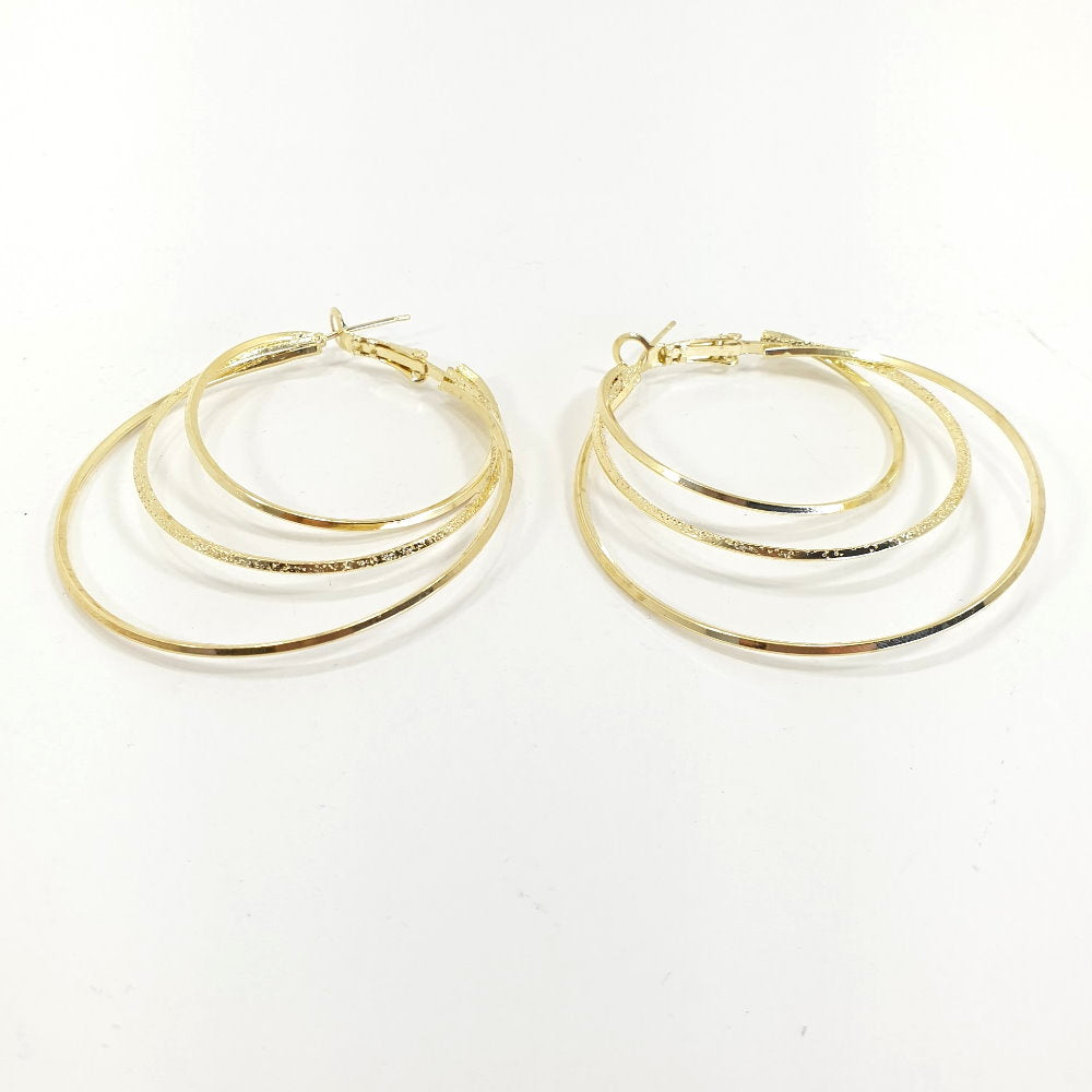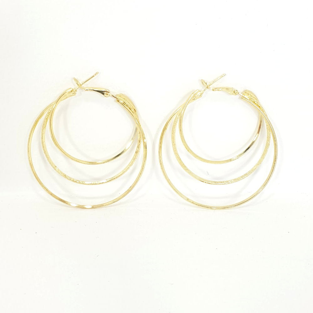 Rosy Lane Round Tri Geometric Hoops Earrings - Gold