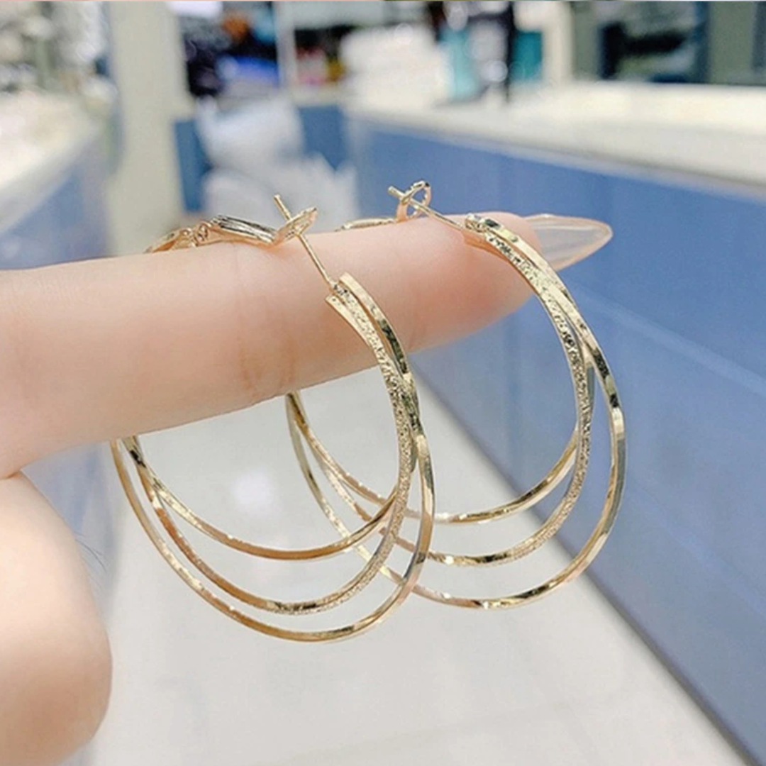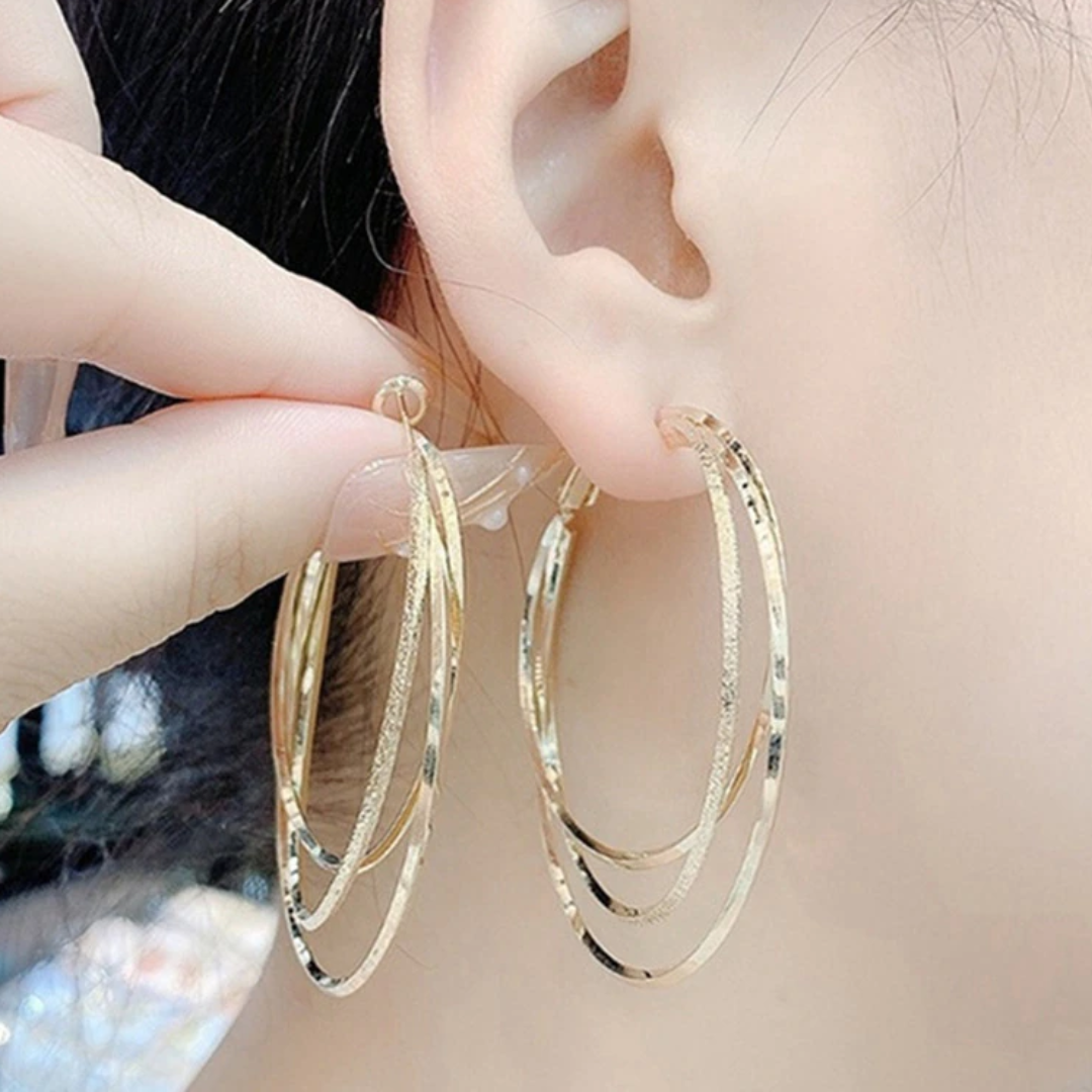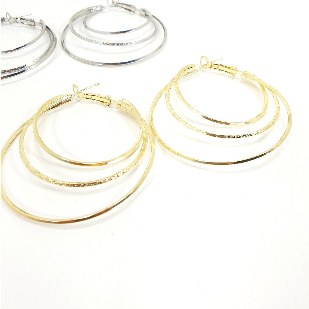 Rosy Lane Round Tri Geometric Hoops Earrings - Gold